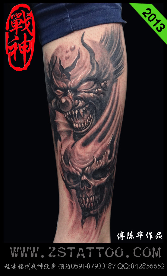 小腿鬼怪纹身